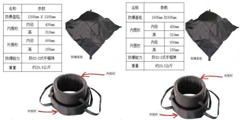 睿盾防爆毯采用雙圍欄結(jié)構(gòu),能阻擋82-2式手榴彈爆炸時所產(chǎn)生的破壞效應(yīng),相當于70g TNT高爆炸藥的爆炸威力,對爆炸碎片和沖擊效應(yīng)可以形成三層阻擋作用,從而保護爆炸中心附近的人和物免受損傷,是現(xiàn)場臨時處置爆炸物品的重要裝置。